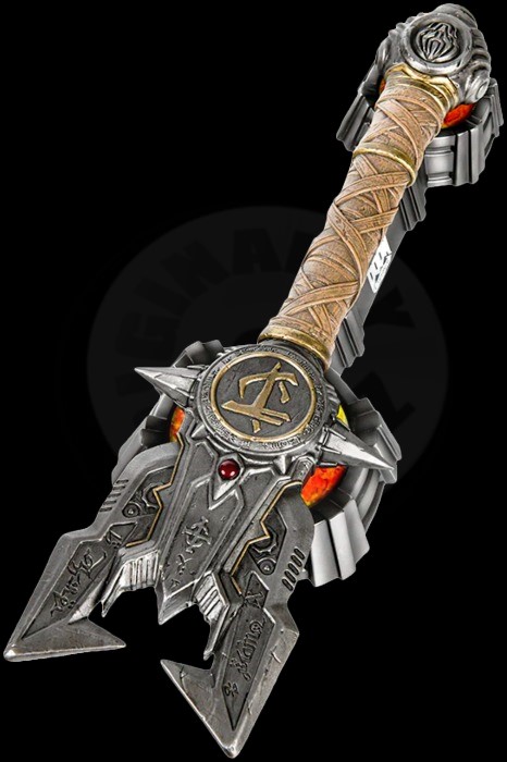 Vyobrazená v inertním stavu se nešetřilo na žádných detailech při zachycení runových, sigilových vzorů a jedinečných textur této bitvě testované zbraně.